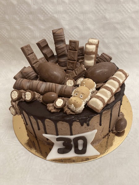 Váha: 1,3kg , vel. 22 cm ,12 porcí Náplň: dle domluvy Ozdoba: čokolády Kinder Cena: od 850,-
