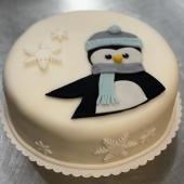 Tučňák na kulatém dortu