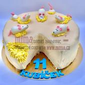 Váha: cca 1,5 kg Náplň: dle domluvy Ozdoba: krém,jedlý papír,kokos Cena: cca 850,-Kč